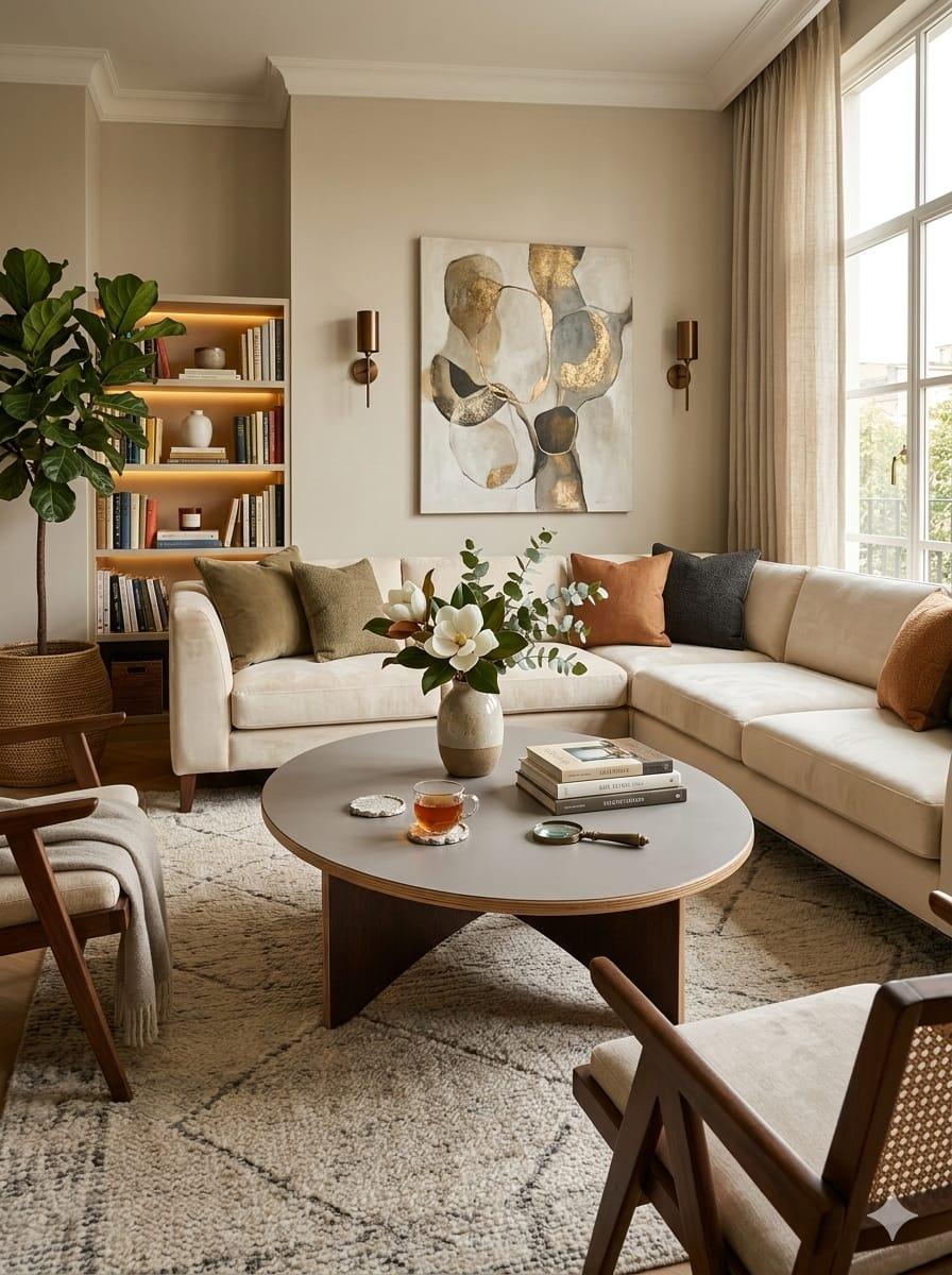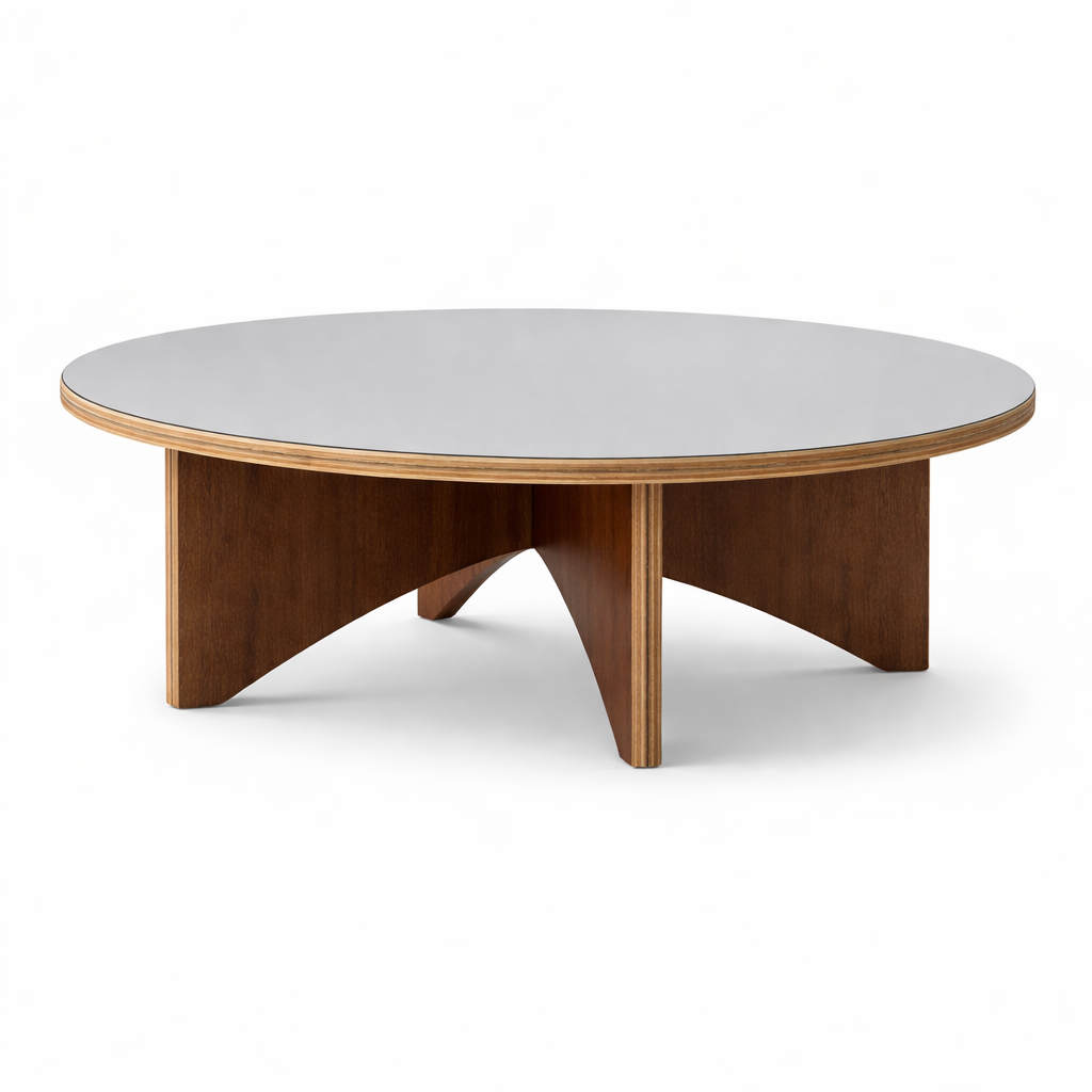 The clean round tabletop provides ample space for books, décor items, beverages, or everyday essentials, while the uniquely designed plywood legs deliver strong structural support and visual appeal.